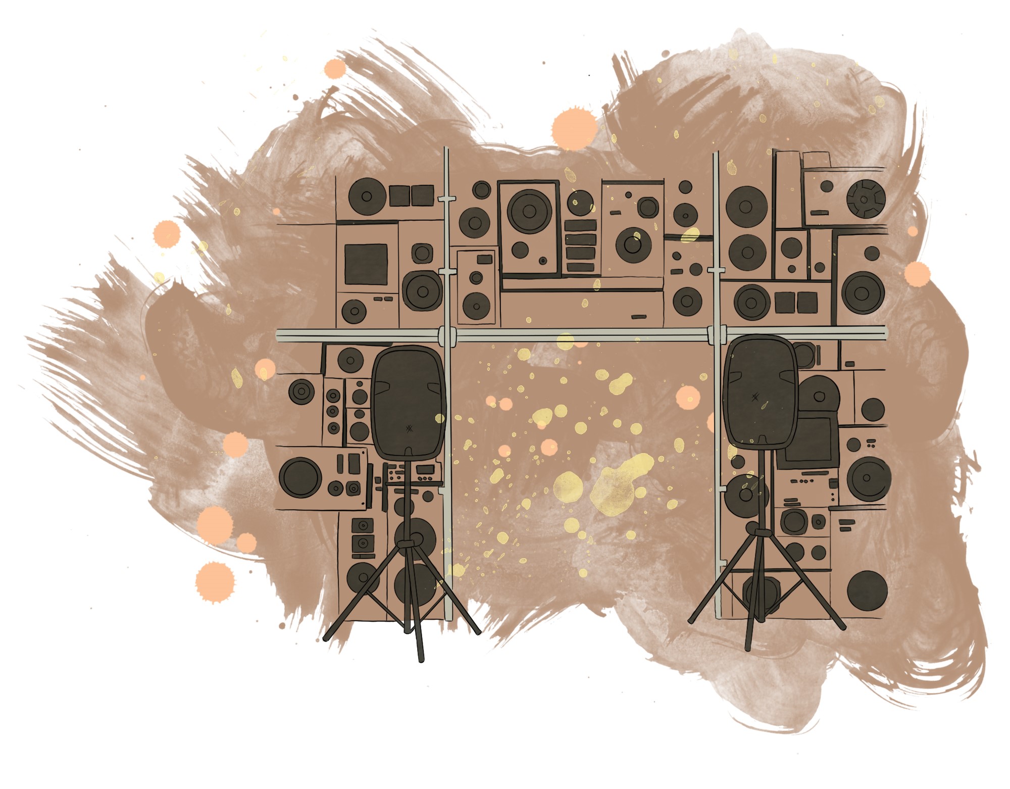 Soundsystem. Damit ist eine umfangreiche Tonanlage gemeint, die von DJs auf Partys eingesetzt wird. Das Konzept wurde in den 1950er Jahren entwickelt und bestand aus Generatoren, Plattenspielern und riesigen Lautsprechern, die in einem Wagen transportiert wurden.