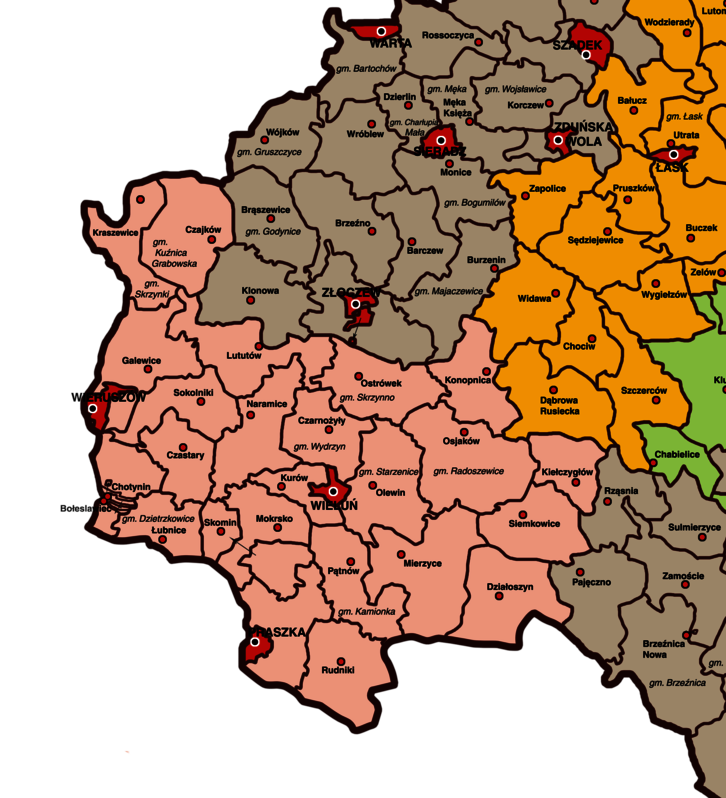 Fragment mapy z pliku„Wojewodztwo lodzkie (Lodz Voivodeship).png“, w: Wikimedia, 28 kwietnia 2023, https://upload.wikimedia.org/wikipedia/commons/f/f0/Wojewodztwo_lodzkie_%28Lodz_Voivodeship%2C_II_RP%29.png, dostęp 15 marca 2024.