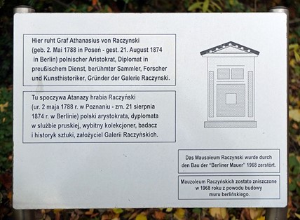 Quelle: Wikimedia Commons, https://commons.wikimedia.org/wiki/File:St.-Hedwig-Friedhof_I_-_Grab_Athanasius_Raczynski_Gedenktafel.jpg, zuletzt geprüft am 21. Juli 2025.